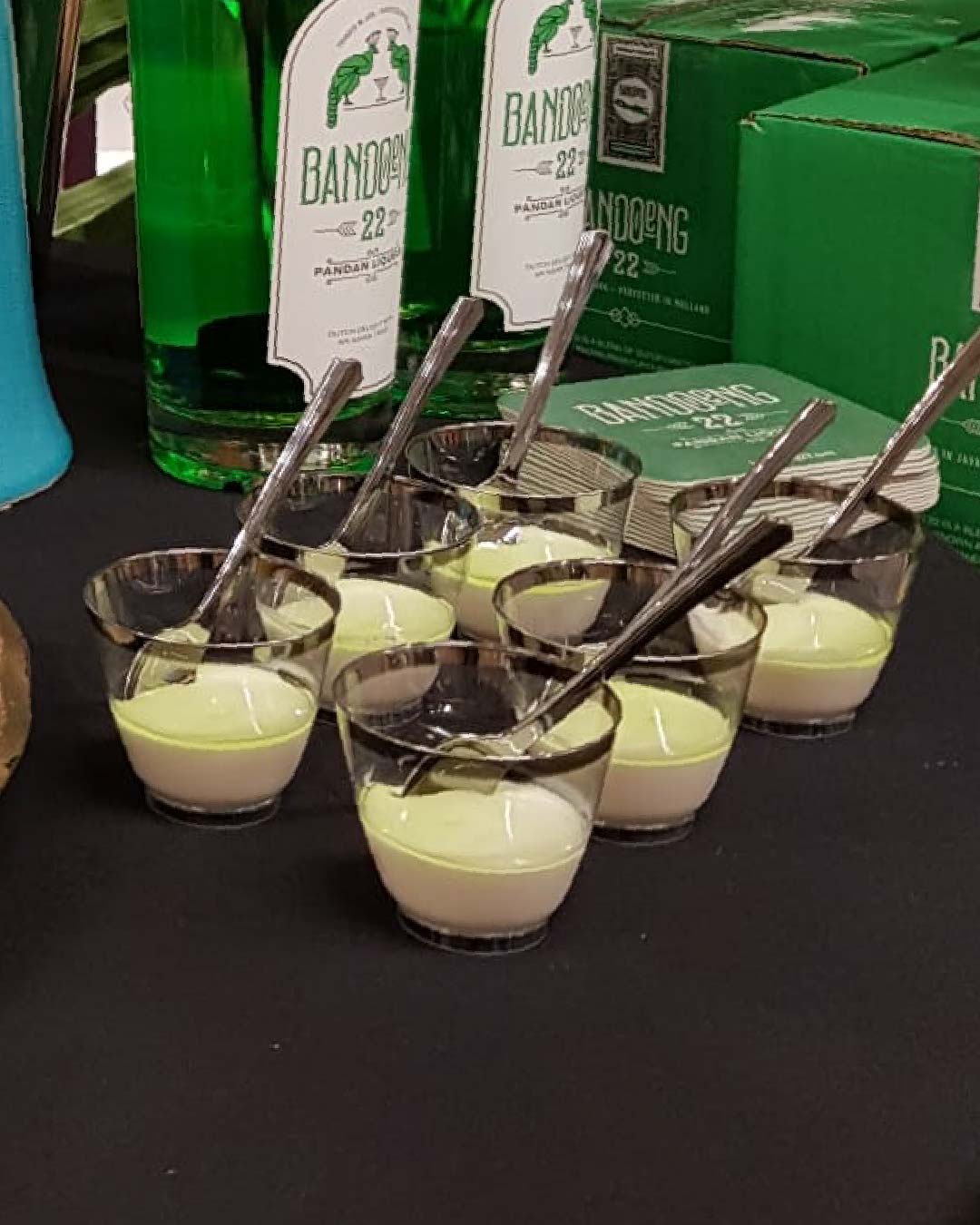 Panna cotta is originally an Italian dessert, made from boiled cream. Wholesaler HANOS developed a panna cotta variation with our pandan liqueur especially for Bandoeng’22.